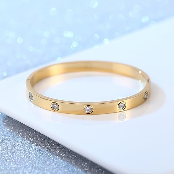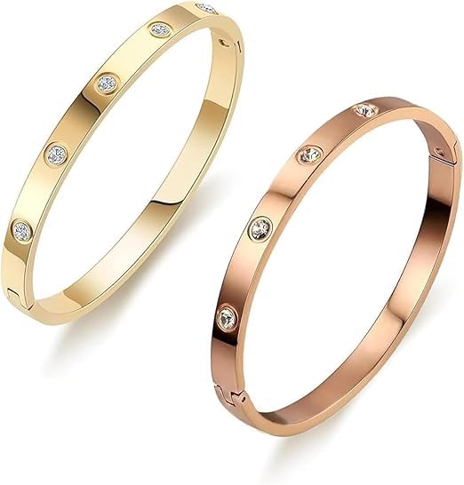 Generic - 2 Pcs 18K Gold Plated Stainless Steel Bangle Bracelets Set Shiny Timeless Bangle Bracelets Gift for Women Girls