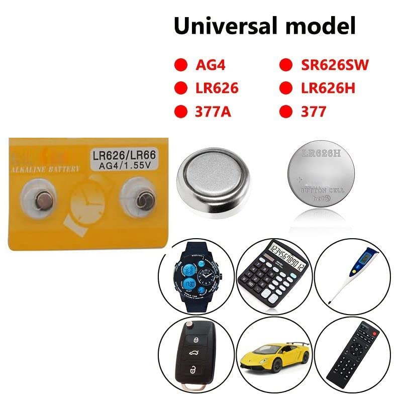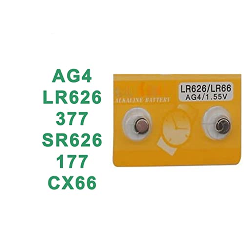 Generic - بطارية خلية قلوية AG4 15 فولت للاستخدام مرة واحدة LR626 LR66 SR626 V377 GP377 606 للساعة والالعاب والكاميرات والريموت (2 قطعة)، قلوي.