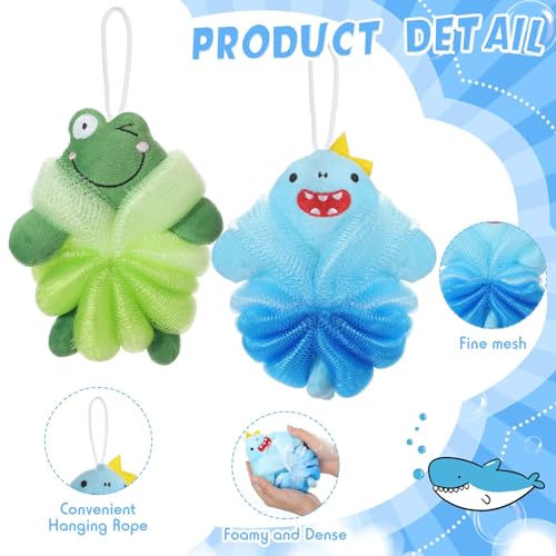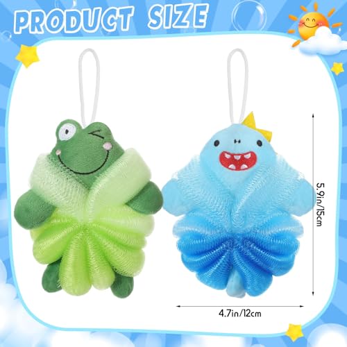 Langthering - 2 Pcs Bath Loofahs Kids Toddler Body Loofahs Cute Cartoon Kids Loofah Kid Bath Sponges Loofah Bath Pouf Body Scrubber Mesh Loofah Sponges for Children Shower Washing(Style-4)