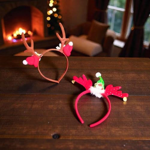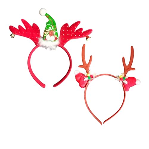 Generic - 2 Pcs Christmas Hair Hoop, Reindeer Antlers and Gnomes with Bells and Ornaments, Red and Orange, Festive Party Accessory