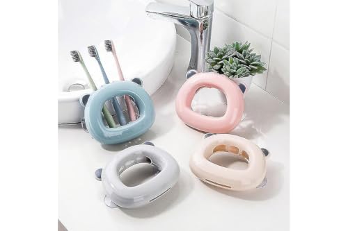 Generic - حامل فرشاة أسنان بتصميم دب لطيف، حامل معجون أسنان بشفاط لاصق، قطعتين، متعدد الألوان/