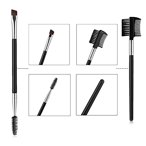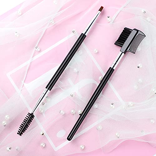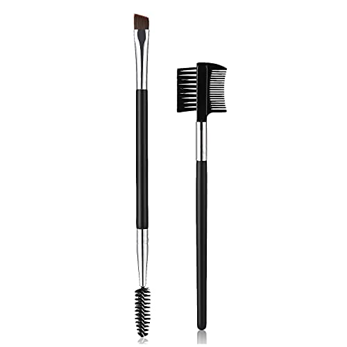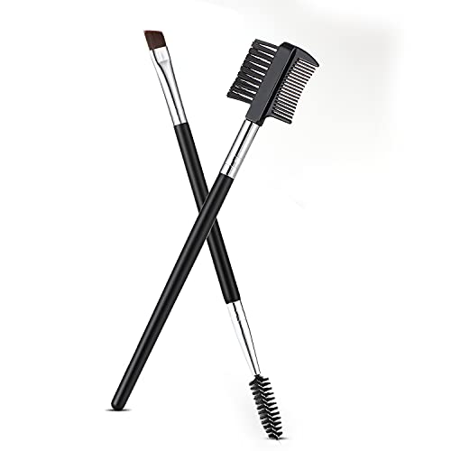 TEOYALL - 2 PCS Dou Eyebrow Brush and Eyelash Comb, Professional Angled Spoolie Eyebrow Brush Double Sided Eyelash Comb