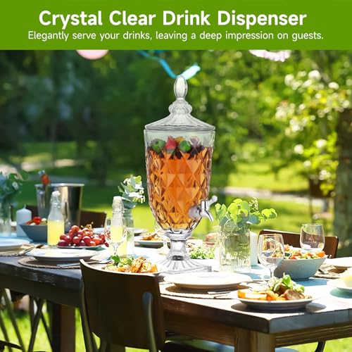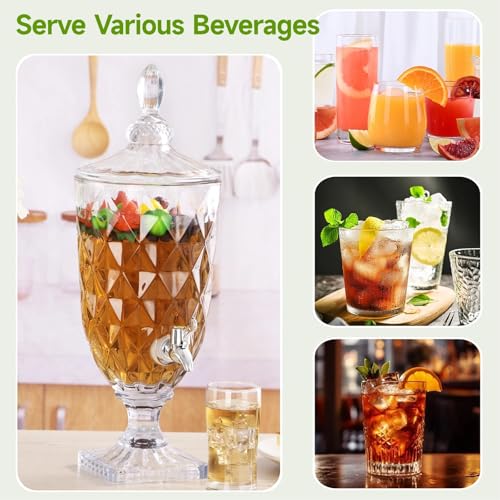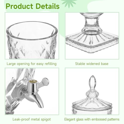 - 【Safe & Elegant】Our glass beverage dispensers are non-toxic and odorless, ensuring safe use. The crystal-clear glass structure with embossed patterns adds sophistication and elegance to your serving station, while also allowing for easy monitoring of beverage levels for timely replenishment.