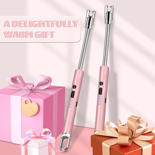 Jamestry - 2 PCS Electric Lighter, Candle Lighter Arc Windproof Flame-Less with 360° Flexible Neck & LED Power Display, Type-C Rechargeable for BBQ, Grill, Camping, Fireplace, Stove