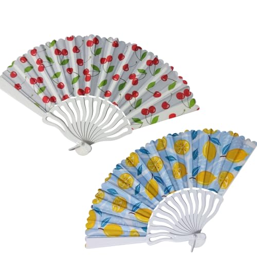 Generic - 2 PCS folded manual hand fans, cherry and lemon