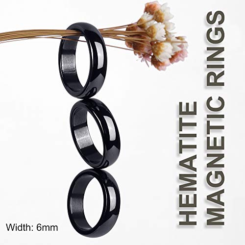 VOLLYOO - 2 PCS Genuine Hematite Rings for Women Men Unisex Black Magnetic Hematite Stone Ring Absorb Negative Energy Balance Root Chakra