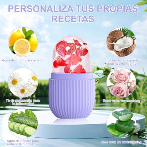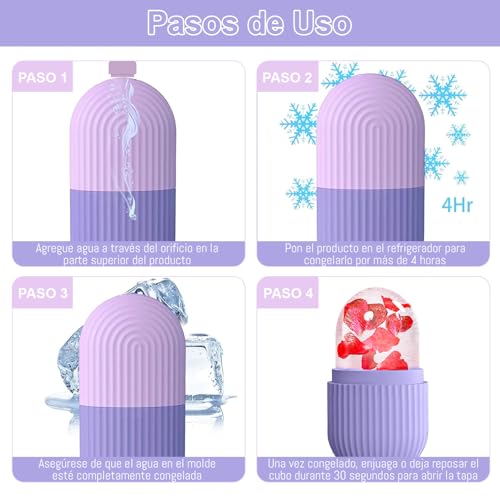 - 【COMFORTABLE TO USE】The ice mold for face is carefully designed and the base is easy to hold, effectively isolating the feeling of cold and protecting your hands. Simply open the lid, hold the base, add water to the mold and place in the fridge for at least 6 hours. When using it, gently pat the skin in circular motions every 30 seconds. It is recommended to use it 1-2 times a day to achieve the best care effect.