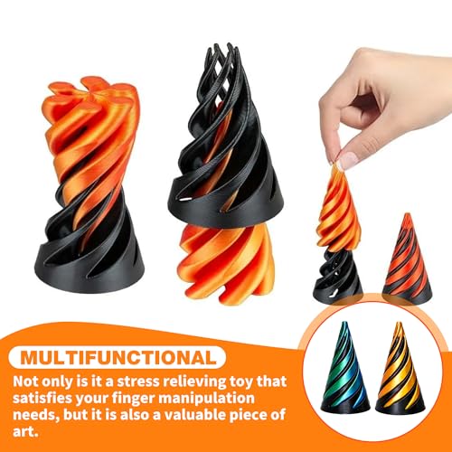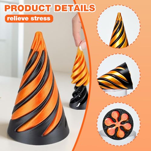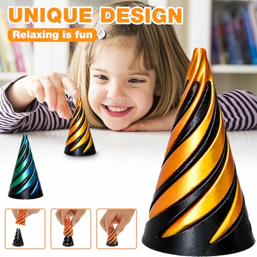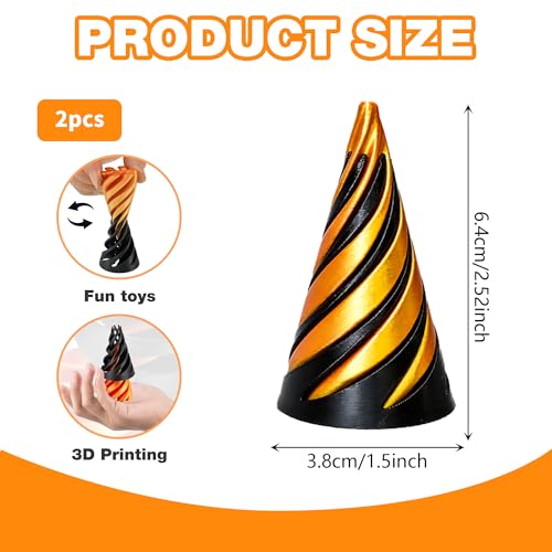 - Material: This dual-axis cone toy is made of PLA material using advanced 3D printing technology