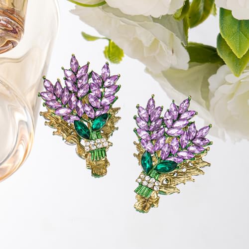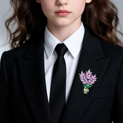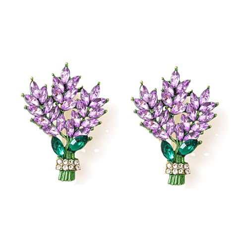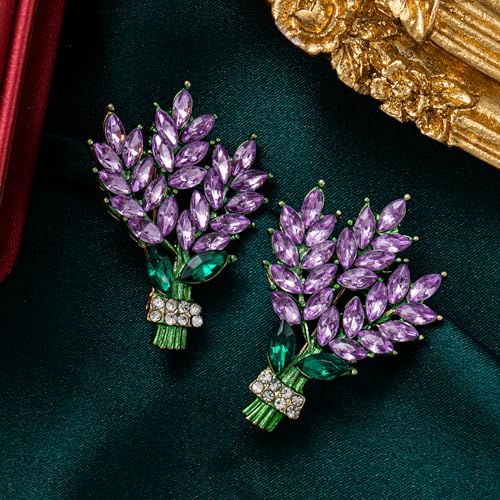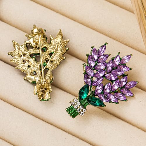 Ceieporian - 2 Pcs Lavender Brooch Pin Floral Crystal Vintage Jewelry for Women Purple Flower Lapel Broche Fascinator