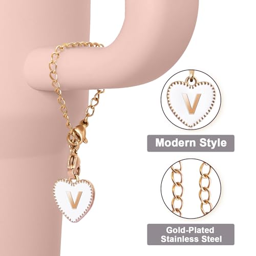 Lolyer - 2 Pcs Letter Charm Accessories for Stanley Cup, Name ID Letter Chain for Stanley Handle, for Simple Modern Tumbler Cup Heart Shape Pendant Accessories (Letter-V)
