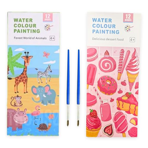 Generic - ٢ قطعة كتاب تلوين مائي سحري للأطفال رسم وتلوين بالماء قابل لإعادة الاستخدام مع قلم سحري وأنشطة تعليمية للأطفال و أدوات مكتبية مسلية (حيوانات)