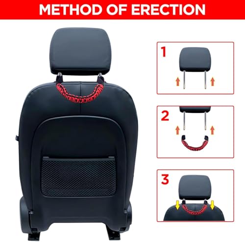 - 【سهل الاستخدام】مساند الذراعين الخلفية هذه سهلة التركيب، ولا تستغرق سوى دقيقة واحدة. لا حاجة إلى تعديل ملحقات السيارة الأصلية، ولن تسبب المقابض أي ضرر لسيارتك. كل ما عليك فعله هو إزالة مسند الرأس، ثم تمرير العمود عبر الحلقة الموجودة على المقبض، لتثبيت القبضة في مكانها بشكل ثابت.