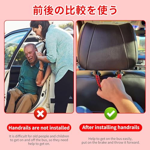 - 【متينة للاستخدام】مقابض مسند الرأس هذه، منسوجة يدويًا بحبل مظلة سميك، مع قوة شد جيدة. المقبض ثابت ومتين للغاية، مما يوفر لك دعمًا قويًا، مما يمنحك الثبات والأمان، ويزيد من راحة الركاب.