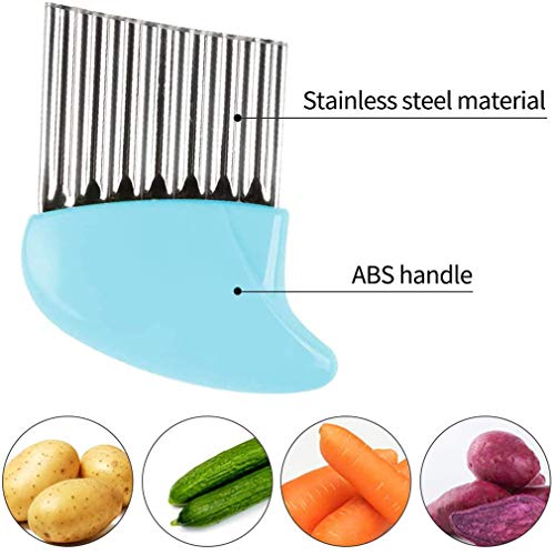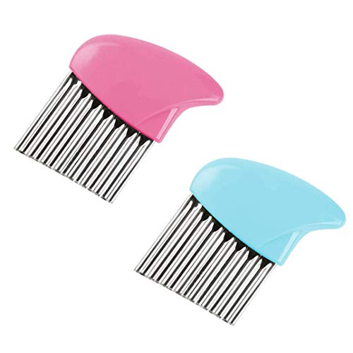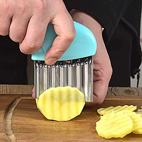 DDSHUN - 2 Pcs Potato Chipper Stainless Steel Wavy Cutter Manual Crinkle Slicer Cut Multifunction Kitchen Tools for Chips Vegetable Fruit Chopper (Blue + Pink)