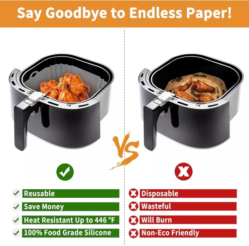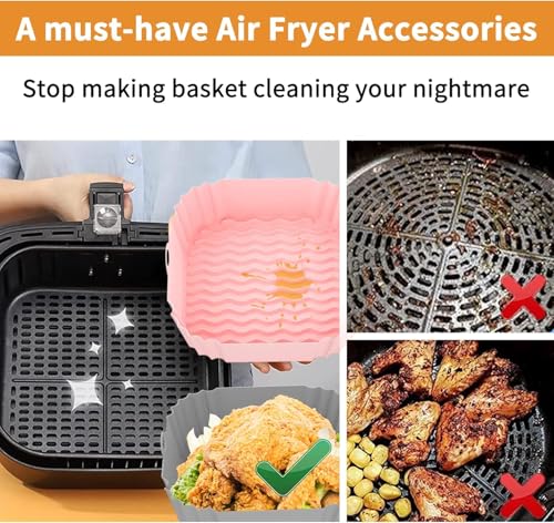- مقاس جامبو وجودة سيليكون غذائي آمن: مصمم بمقاس كبير (جامبو) ليناسب أحجام الأير فراير المربعة الشائعة والثقيلة الوزن. مصنوع من سيليكون غذائي عالي الجودة، مقاوم للحرارة، مرن، متين ولا ينقل أي روائح أو نكهات إلى طعامك، مما يضمن صحة وسلامة عائلتك.
