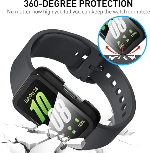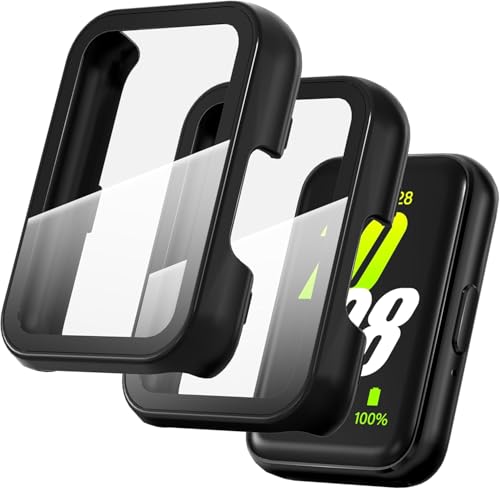 fashion mania - 2 PCS Watch Screen Protector Compatible for Samsung Galaxy Fit3, Full-Coverage Tempered Glass Screen Protector, Hard PC Bumper Protective Cover.