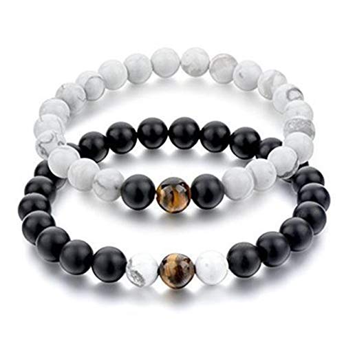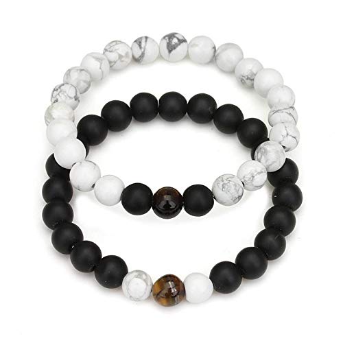 Other - 2 Pcs White and Black Natural Stone Beaded Bracelet
