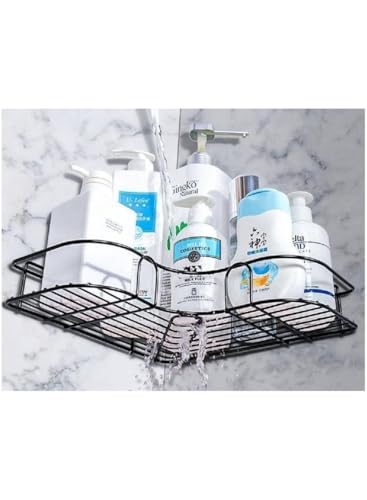 Generic - رف حمام من قطعتين مثالي لتخزين مستحضرات التجميل، رف زاوية معدني لاصق يثبت على الحائط، رف تخزين وحامل شامبو، للمطبخ والحمام من الستانلس ستيل، (عبوة من قطعتين) اسود