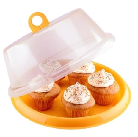 - VERSATILE CARRIER: Round serving platter accommodates up to 6 standard-sized cupcakes or muffins with ample height clearance for frosting