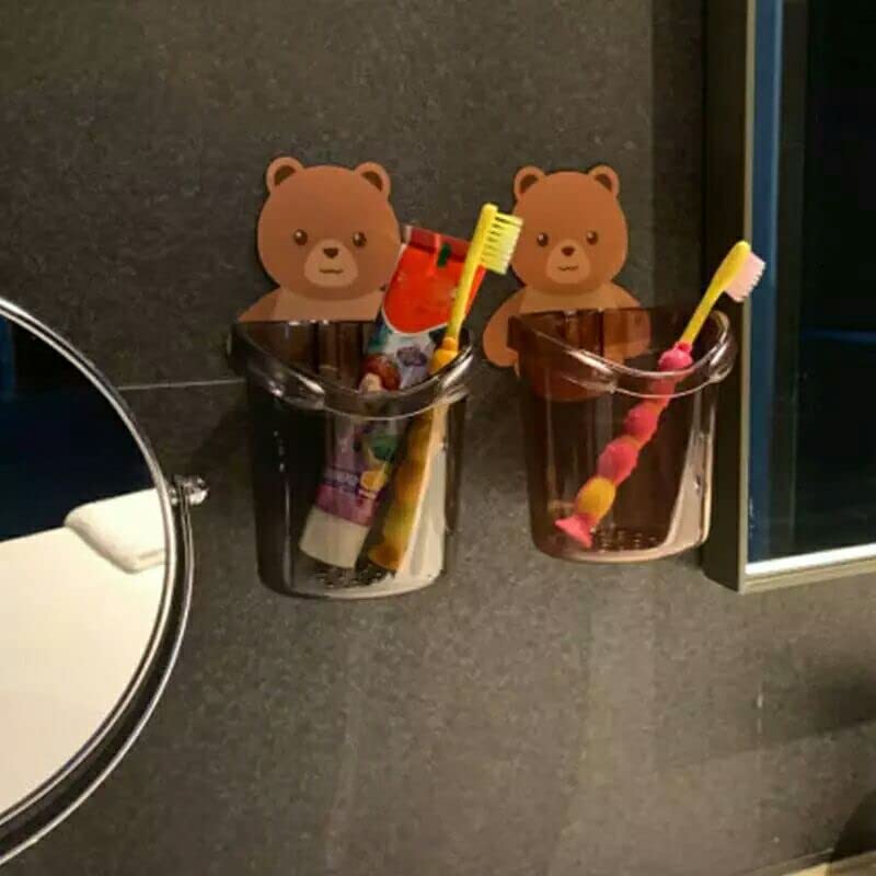 Generic - 2 Piece Double Face Teddy Bear Shaped Brush Holder No Screw Only