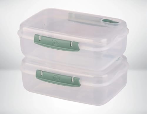Generic - 2 piece, Food Storage Container Set, Clear Plastic with Mint Green Handles, Airtight Lid, Stackable Design, 2 Pack