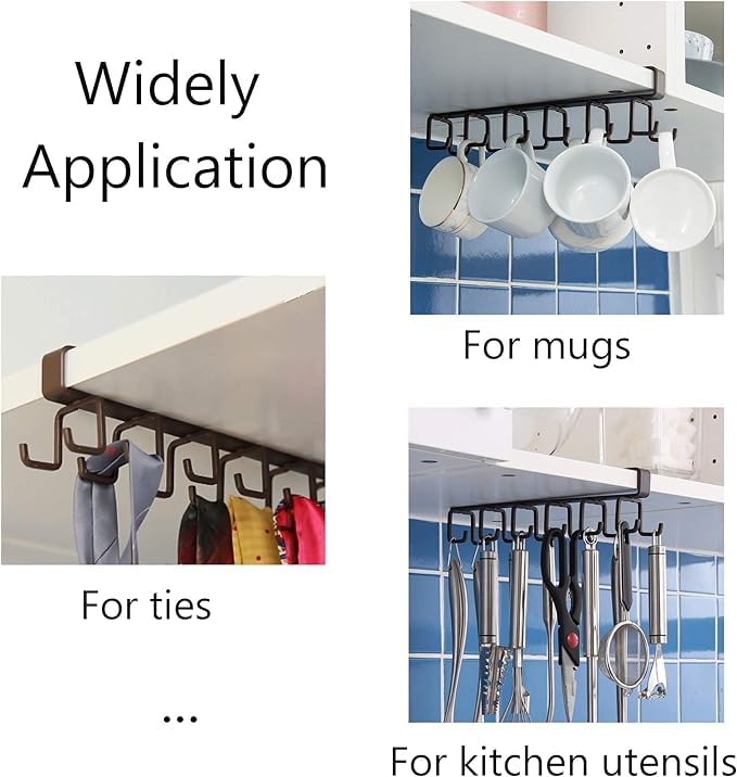 - Double row design, hanging them under your cabinet for organization, free up cabinet space
