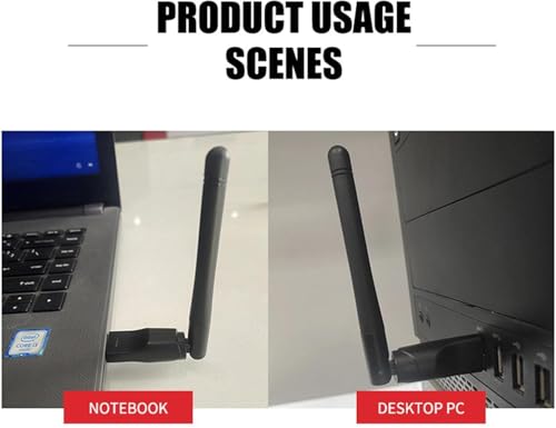 Generic - بطاقة شبكة لاسلكية USB من قطعتين - محول واي فاي عالي الحساسية مع هوائي خارجي لأجهزة الكمبيوتر وأجهزة فك التشفير