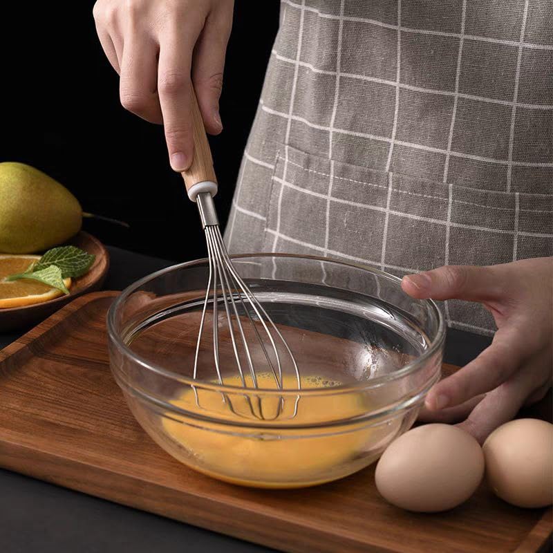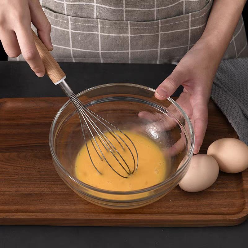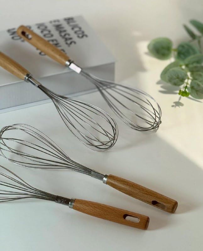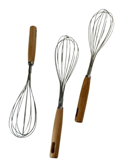 Generic - 2 Pieces Egg Beater Hand Mixer Durable Metal Material Comfortable Wooden Handle Premium Quality (Medium)