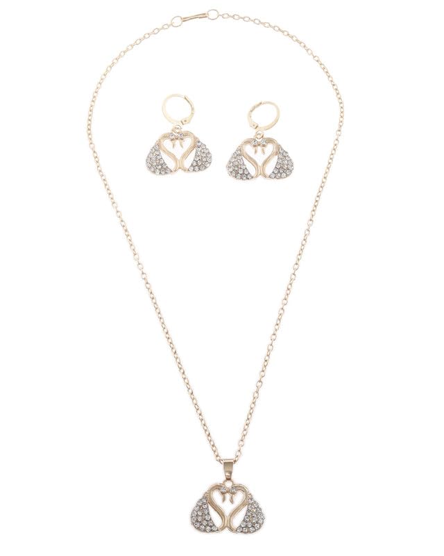 Generic - طقم 2 قطعة سلسلة وأقراط أذن أنيق تصميم عصري بلمسة فاخرة بتصميم لطيف على شكل بجعة مقاس قابل للتعديل نسائي ، ذهبي TON-A-1126