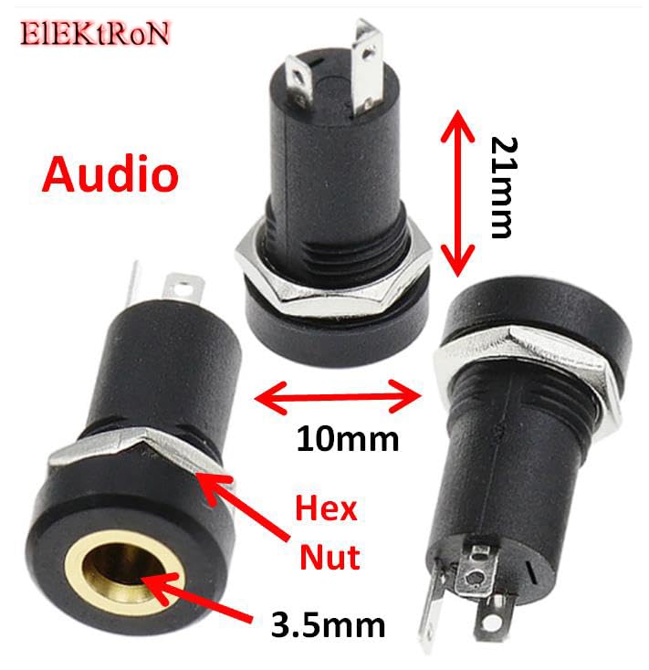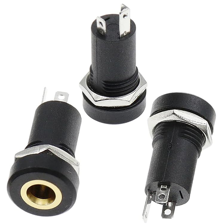 Generic - 2 Pieces Female Port Socket Jack Connector Repair Audio PJ392A 3.5MM 3 Pole Black Stereo Gold With Nuts PJ-392A Headphone Replacement Adapter
