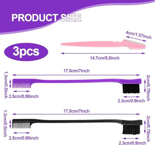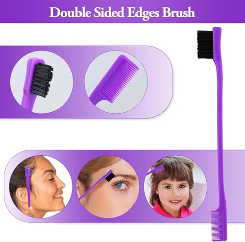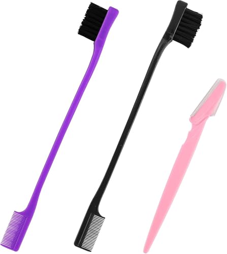 JRSHIRLEYLTD - 2 Pieces Hair Edge Brushes with 1 Eyebrow Trimmer, Double Sided Control Hair Brushes, Hair Gel Brush (Black, Purple)