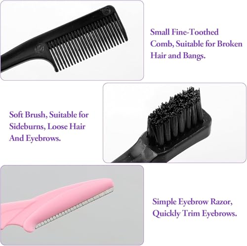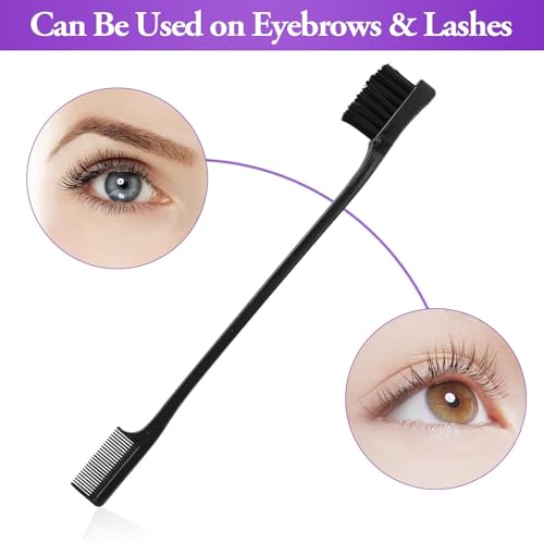 - What you get: 1 black double-headed eyebrow brush, 1 purple double-headed eyebrow brush and an eyebrow knife. Both have different colours, easy to distinguish and use alternately. The brush head is moderately soft and hard, elastic and not easy to break. The rounded and smooth comb teeth do not hurt your skin.