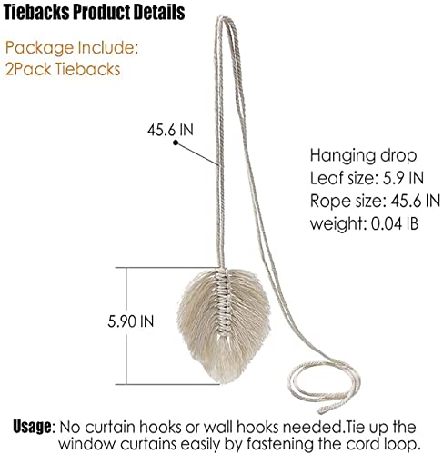- SIMPLE WAY to TIE IT - No curtain wall hooks needed, it is designed with cotton rope and woven single ball, you can tie up the window curtains easily by fastening the cord loop, you can also refer to the picture for details