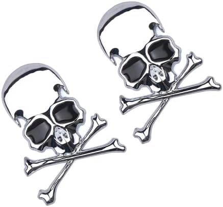 Generic - ملصق شعار سيارة معدن برنز هيكل جمجمة سلفر مقاس 7.2 سم فى 6سم للسيارات والشاحنات والدراجات النارية وغيرها - 2 قطعة