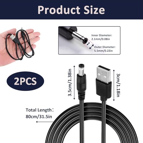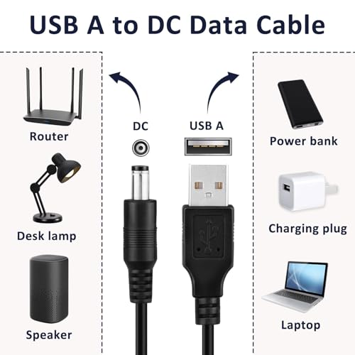 - توافق شامل: قابل للتكيف مع جميع الأجهزة التي تحتوي على مدخل تيار مستمر 5.5 × 2.1 ملم، كابل USB إلى تيار مستمر 5 فولت مثالي لتشغيل أجهزة الراوتر ومصابيح ليد وغيرها من المعدات الإلكترونية.