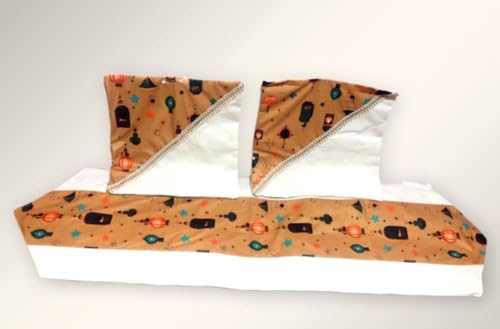 LC - مفرش طاولة رمضان + 2 كوشن كوفر مخدة طقم ٣ق مكون من RUNNER مقاس كوشن مقاس 40 * 40 سم خامه الكتان هافان