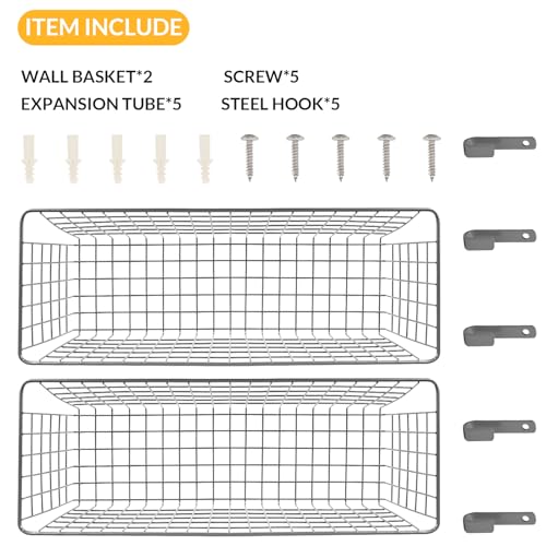 - Easy Installation: Includes 2 hanging baskets, complete with mounting hardware set (5 steel hooks + 5 expansion tubes + 5 screws). Simply mount the hooks to the wall using the included expansion tubes and screws, then hang the basket - you're ready to go! If you prefer not to hang it on the wall, you can also place it wherever you want. It's a versatile and convenient choice.