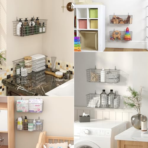 - Sturdy Metal Wire Baskets: These metal wall baskets are made of solid metal wire with anti-rust coating, sturdy and durable for long lasting. The wire baskets for organizing open design allows you to see the items inside the basket, which makes it easy to find the item you need. And easy to clean, just wipe clean with a soft damp cloth and dry towel.