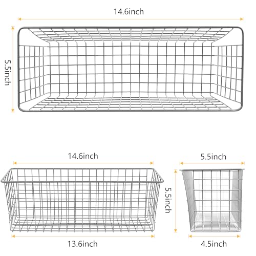 - Multiple Storage Options: By organizing a variety of items, you can effectively manage the clutter in your home. These wire baskets can support a wide range of items without bending under weight and perfect for storing fruits, vegetables, snacks, spice jars, books, toys, folders, magazines, toiletries, tools, pantry items, bathroom accessories, office supplies, craft supplies, and more.