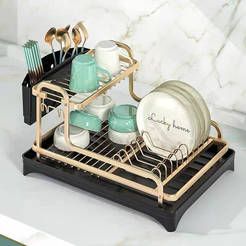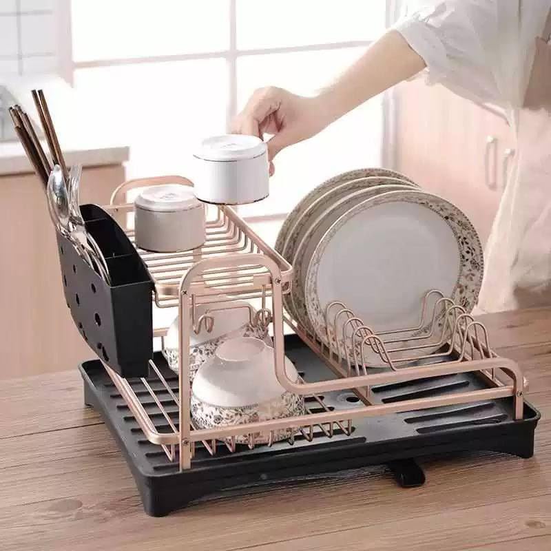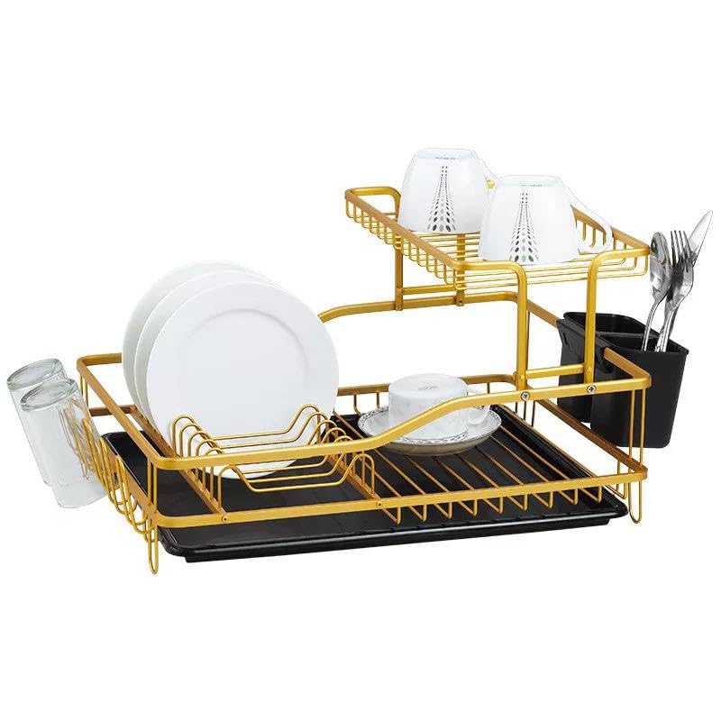 Generic - مطبقية ألومنيوم 2 دور لتنظيم الحوض – منظم عملي لتجفيف وترتيب الأطباق والأكواب وأدوات المطبخ