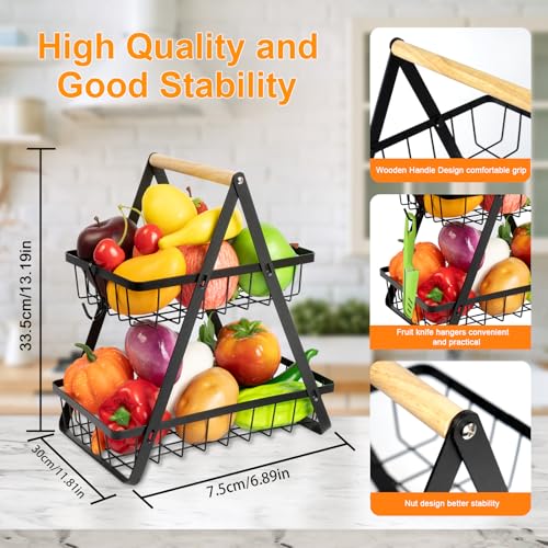 - 【مادة متينة】- سلة الفاكهة وحامل الخضروات للمطبخ مصنوعة من الحديد مع لمسة نهائية سوداء مطلية بالمسحوق، مقاومة للصدأ والماء وهيكل ثابت، مثالية لمختلف أحجام الفواكه والخضروات والوجبات الخفيفة، لا تتشوه بسهولة، ويمكن استخدامها لفترة طويلة