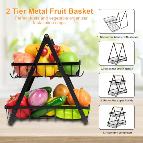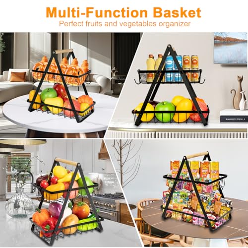 - 【سلة فاكهة قابلة للفصل】- تعتمد سلة الفاكهة القابلة للتكديس هذه تصميمًا من طبقتين، يمكنك استخدام سلة الفاكهة هذه في رف مكدس من طبقتين أو استخدامها كسلتين منفصلتين، مثالية لمختلف أحجام الفواكه والخضروات والوجبات الخفيفة، مما يمنحك مساحة أنيقة ومنظمة. مع خطافين لتعليق الموز والعنب وما إلى ذلك