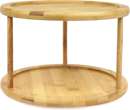 Generic - 2-Tier Divided Turntable 12inch Bamboo Spinning Spice Rack Holder Kitchen Cabinet Counter Top Organizer Storage Container Rotating Tray.