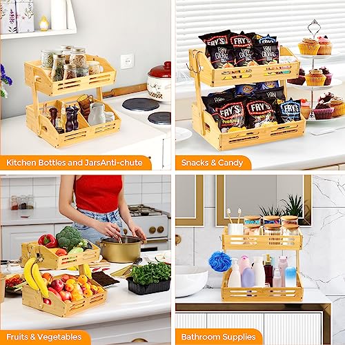 FTUREERA - 2 Tier Fruit Basket, Bamboo Fruit Basket For Kitchen Counter, Fruit and Vegetable Storage Bowl Stand Holder, Home Kitchen Countertop Organizer