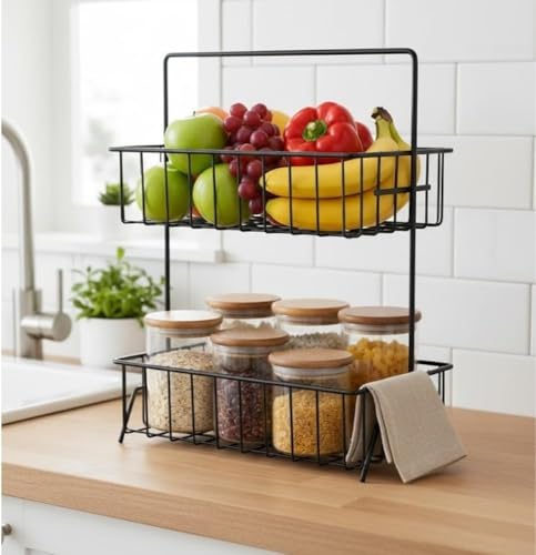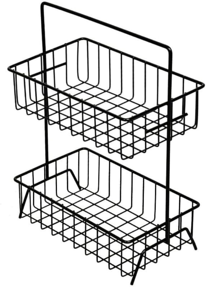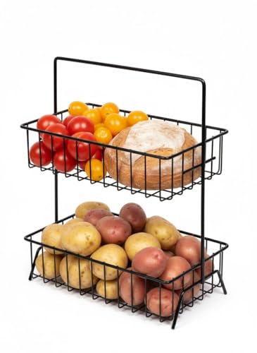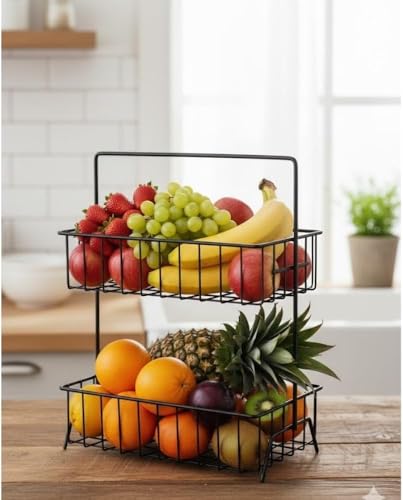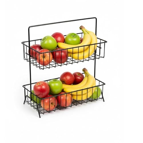Happy Home - 2 Tier Fruit Basket Countertop for Kitchen, Vegetable Bread Bowl Storage Stand - Metal Rectangular Wire Basket, Antique Black