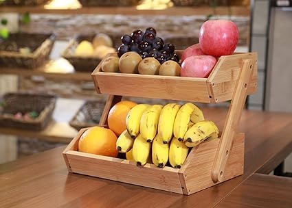- Design:Modern and elegant double wooden shelf, perfect for kitchen and dining table, Two levels for storage