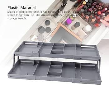 - Innovative and functional two-turn fold open drawer organizer made of high-quality durable plastic material. It has several multi-sized compartments to store everything you need in one place tidy and easy access The perfect choice for organizing messy drawers in your bedroom, kitchen, or even the workshop