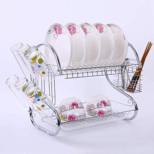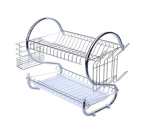 Other - 2 Tier Stainless steel Chrome Dish Drainer Rack S-shaped Dryer Tray Holder with Chopstick Glass Holder