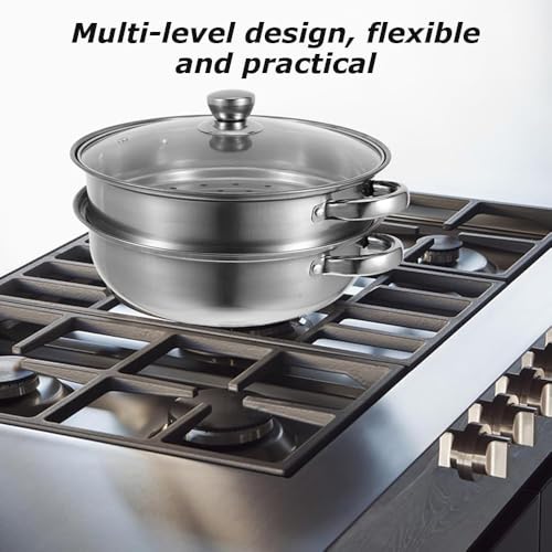 - **طهي متعدد الاستخدامات: ** وعاء البخار المكون من طبقتين من الستانلس ستيل مثالي للاستخدام متعدد الأغراض، مما يسمح لك بسهولة ببخار الخضروات والزلابية وأكثر من ذلك، مما يجعله إضافة أساسية لمجموعة أدوات الطهي بالبخار في مطبخك