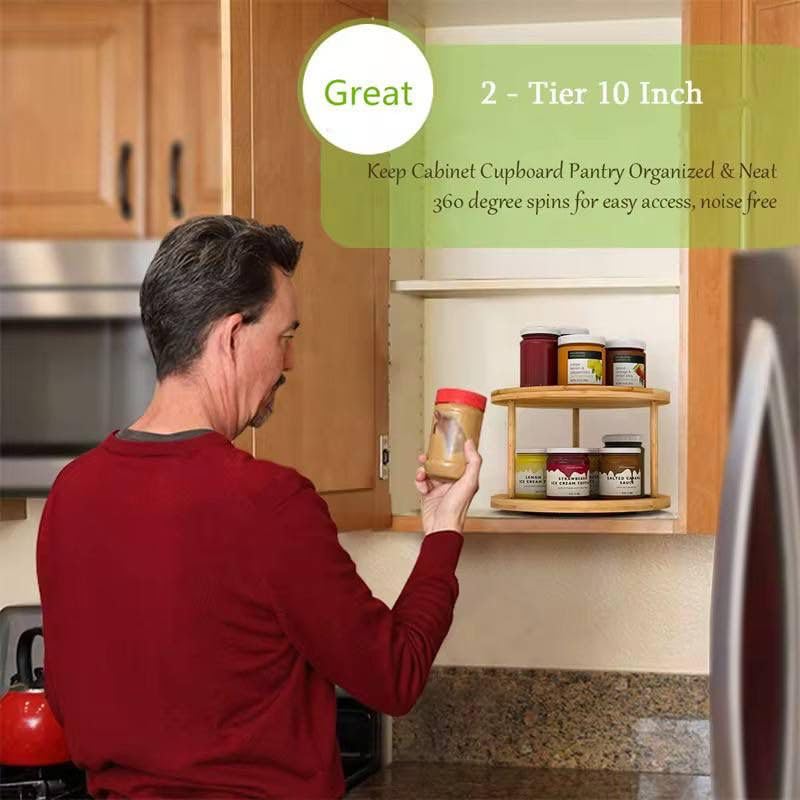 Generic - 2 Tier Turntable Wood Organizer, for arranging spices, oil, vinegar, and more.Elegant piece for organizing perfumes and creams on the dresser with the highest quality of wood. (1 piece)